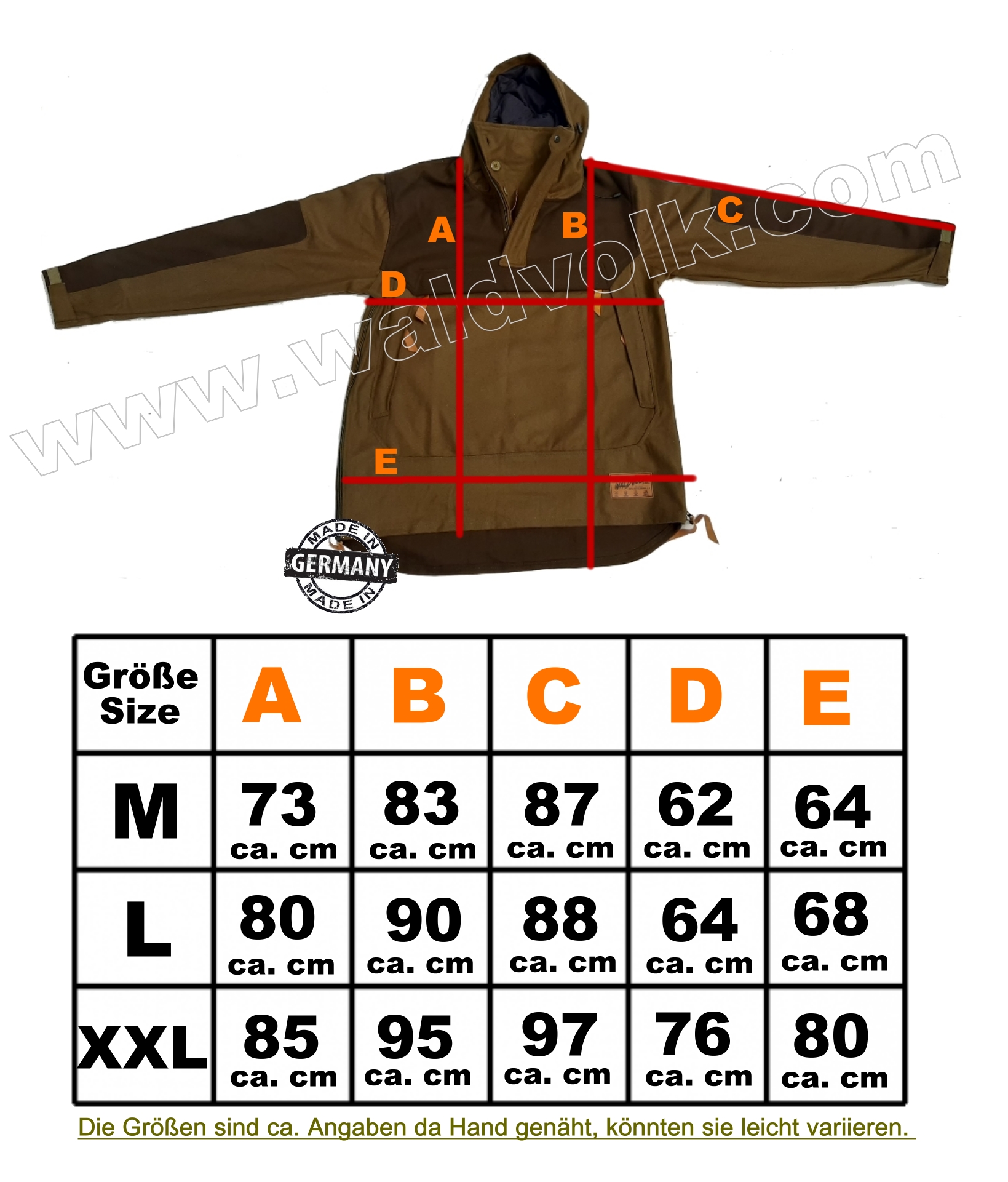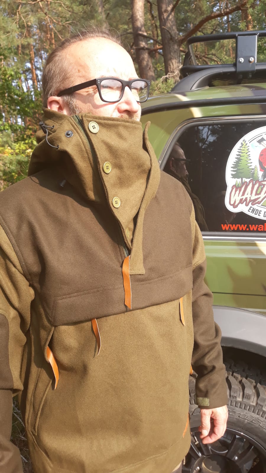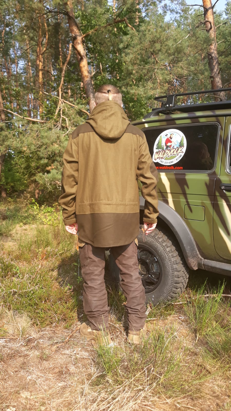 Der Waldbursch garantiert optimale Bewegungsfreiheit durch seinen weiten Schnitt. Hat ein verlängertes Rückenteil und die Bundweite kann man einstellen,die Ärmel lassen sich mit Klettverschluss regulieren.
